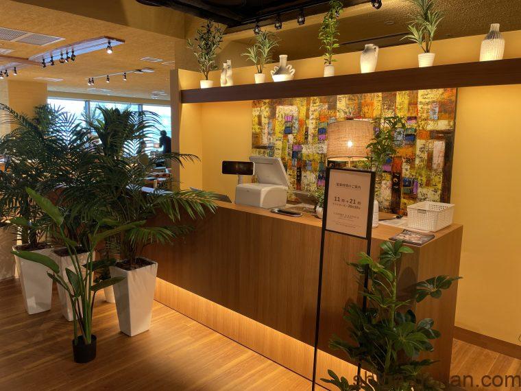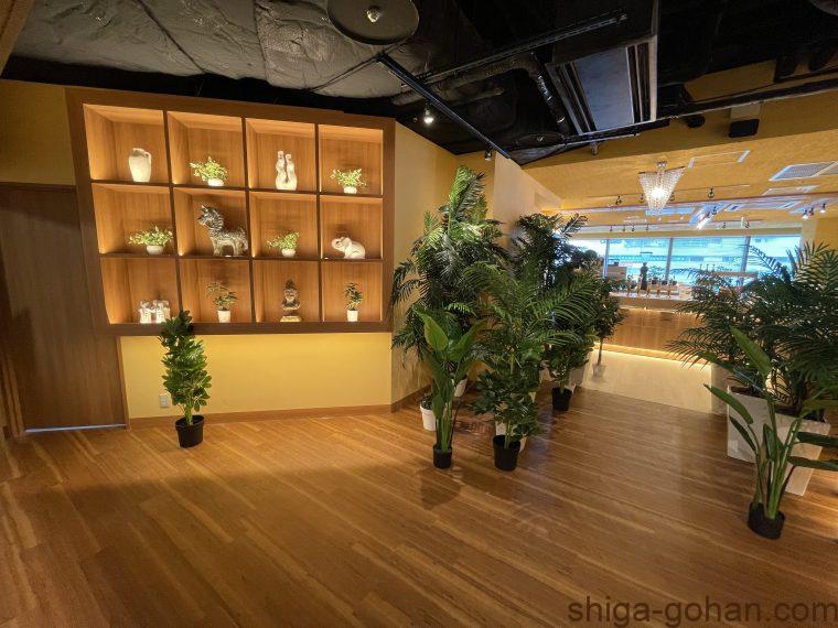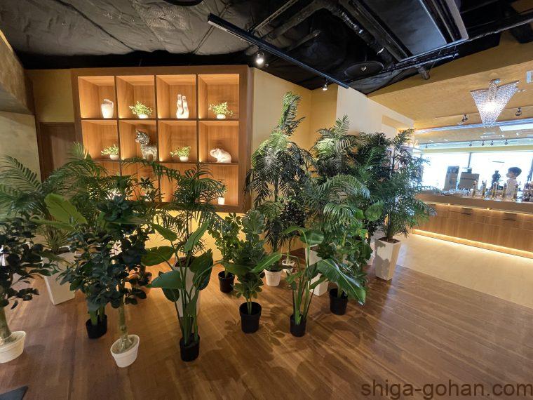 入口に入ると観葉植物が並べられた通路とお店の雰囲気に合わせたインテリアが置かれていました。