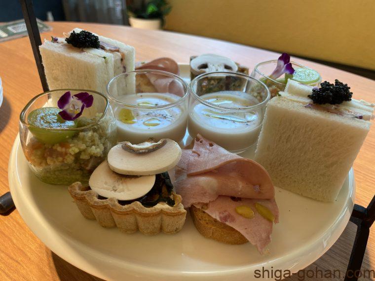 こちらがアフタヌーンティの下の段で、軽食系のメニューが乗っていました。