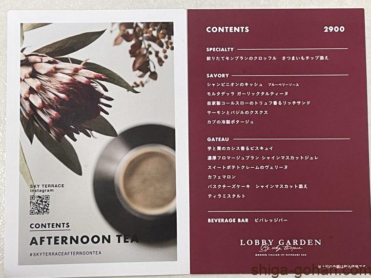 アフタヌーンティのメニューを見れば、どんなメニューがあるのかよくわかりますね。