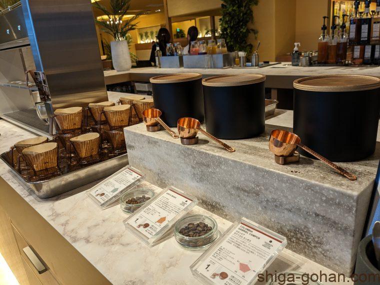 コーヒーは3種類の豆が用意されていて、好きな豆を選んでその場でドリップできます。