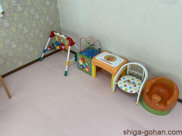 部屋の奥の方には子ども用のおもちゃなども揃っていて、食事が届くまでの間、遊べるところもうれしいポイントです。