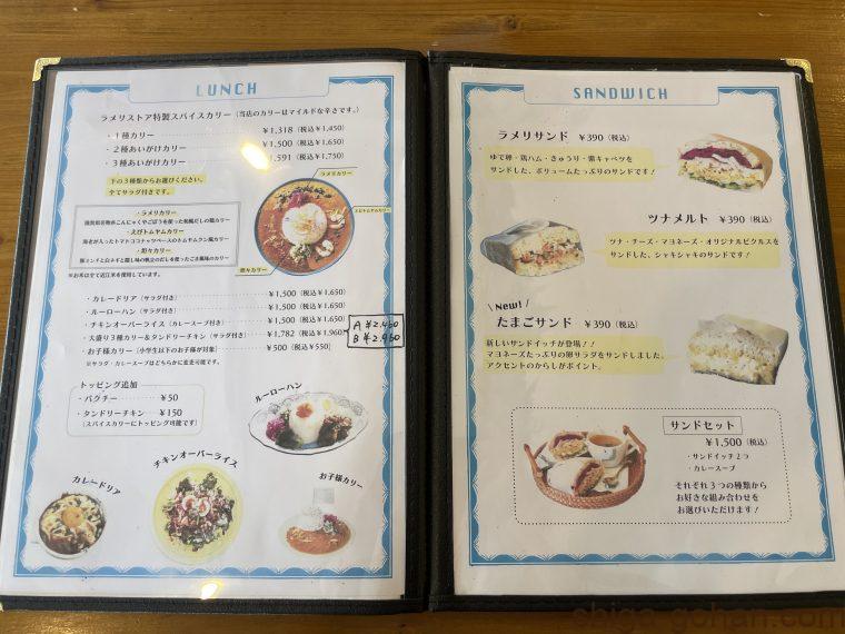 イチオシのメニューはスパイスカレーですが、それ以外のカフェメニューも種類豊富。