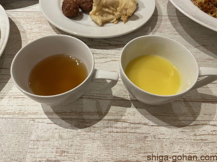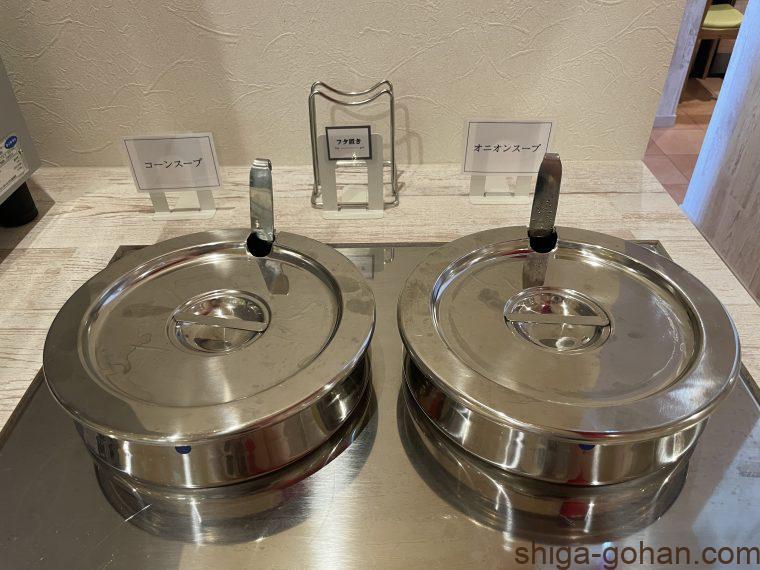 スープはオニオンスープとコーンスープがあります。写真ではわかりづらいですが、具材もちゃんと入っていて、満足できるスープです。