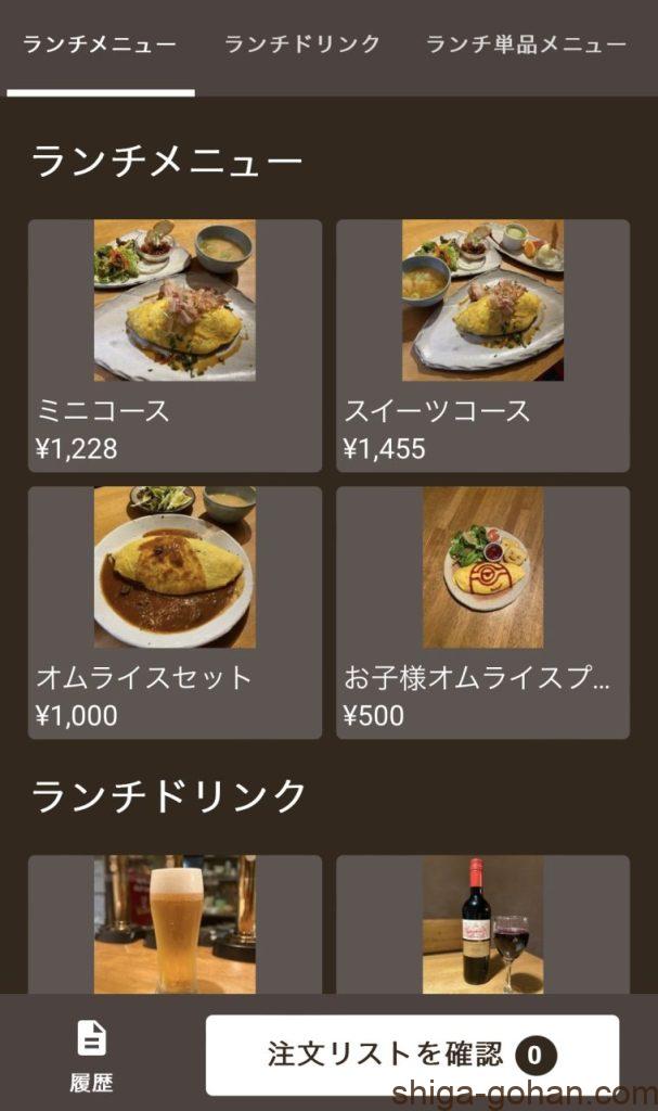 注文を始めるをタップすれば、次のようなメニューが表示されます。